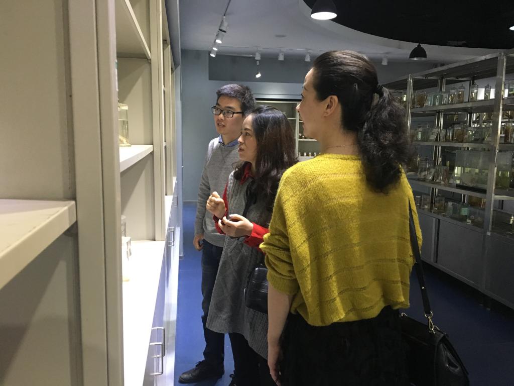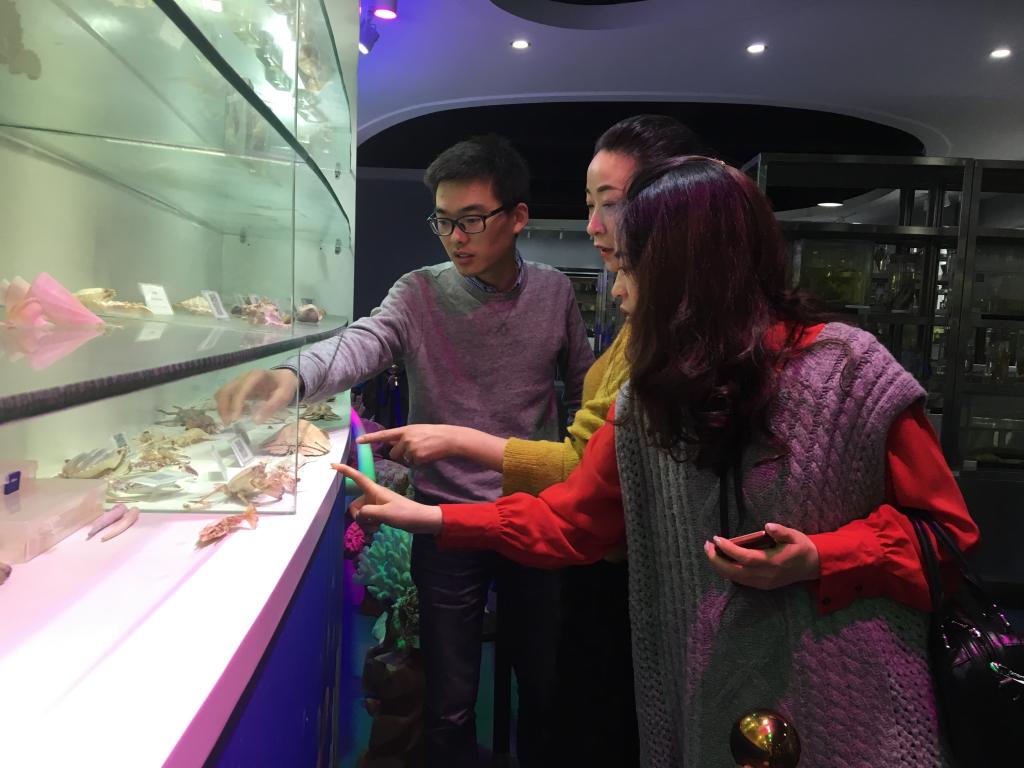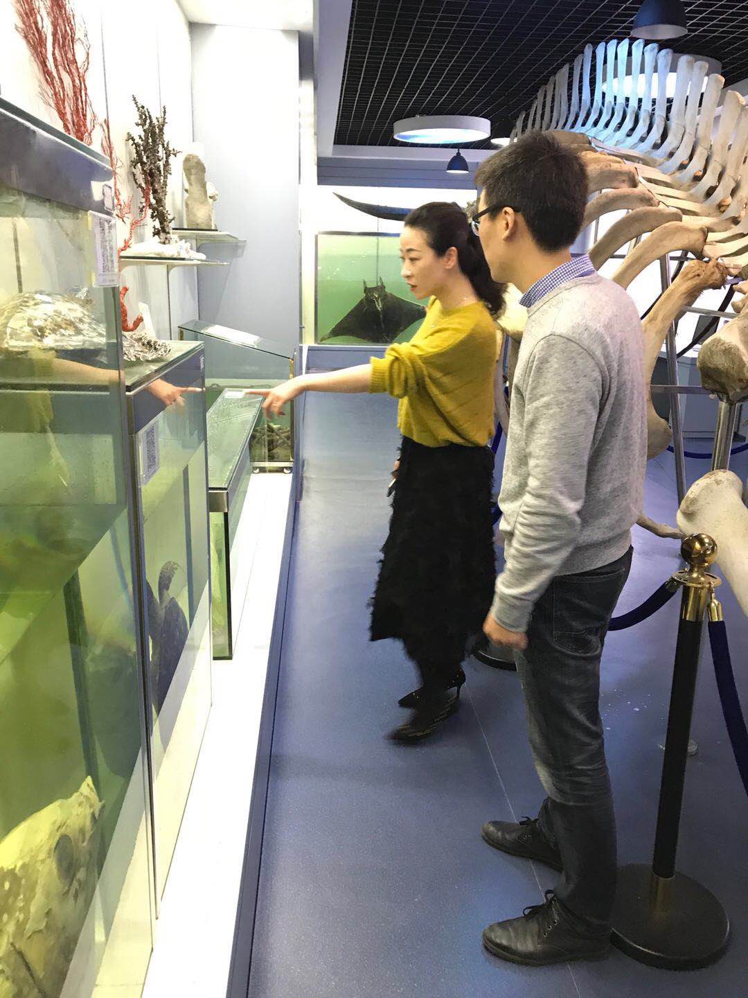 4月19日上午,普陀区青少年宫主任刘立力一行来我校海洋生物标本馆进行参观交流。在海洋生物标本馆陈健老师和食品与医药学院学生干部的陪同下,刘主任参观了我校海洋生物标本馆。陈老师向刘主任详细介绍馆内的情况,两人针对海洋生物标本展览和建设问题进行深入探讨,随后,刘主任表示有机会一定带青少年宫的小朋友们前来参观学习,并邀请我院学生去青少年宫开展志愿者活动。
