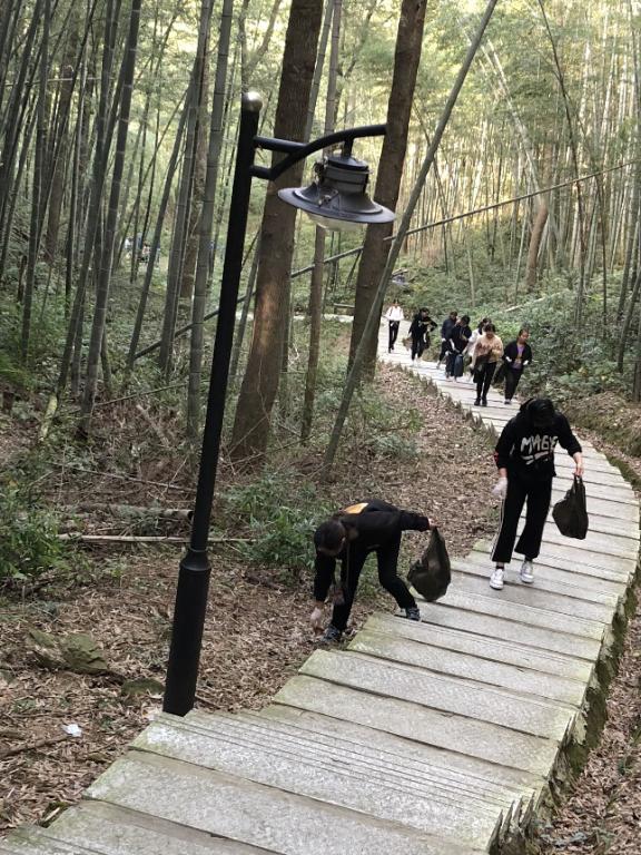10日下午一点半,长峙和定海校区的志愿者们在浙海大定海校区正大门集合,步前往舟山市定海区长岗山森林公园。一路上阳光明媚,空气清新,志愿者们也都欢声笑语不断。到达舟山市定海区长岗山森林公园后,志愿者们在傅佳青老师以及心委的带领指导下,按照计划进行了分组。志愿者们带着手套,拿着垃圾袋,开始了plogging慢跑捡垃圾活动。每个志愿者都十分专注,仔细地捡着路上的垃圾,他们一路捡,一路上山,心委的干事们也都在路上站点,为志愿者们引路。经过几个小时的努力,志愿者们成功抵达目的地,并在山上的亭子旁和自己一路走来辛苦所捡的垃圾进行了合照留念。最后大家带着垃圾袋原路返回,在山脚下将垃圾给院心委的同学们,由他们回收垃圾。