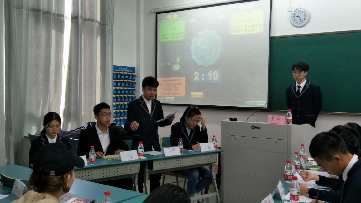 比赛双方为正方A18海渔与反方A18药学,双方围绕“如果人工智能发展到能帮助人类完成一切工作,这样的说法是可喜的还是可悲的”这一观点展开了激烈的辩论。正方辩手依照本方观点“如果人工智能发展到帮助人类完成一切工作,这样的说法是可喜的”采取先发制人,举出人工智能的种种好处,这样更有助于公众议题的讨论,反方选手也不示弱,立刻绝地反击举出反例,成功化险为夷。