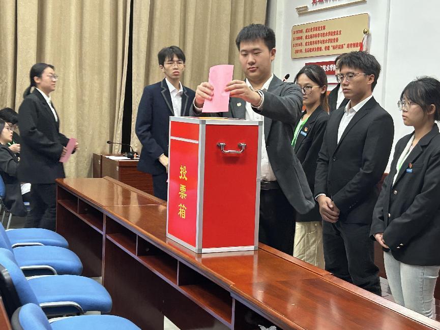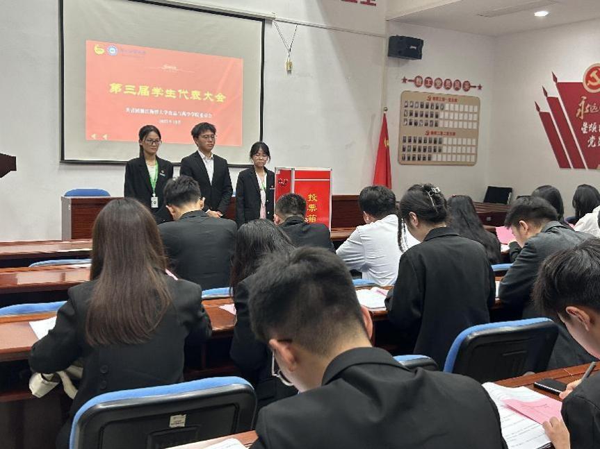 在会议上,各代表认真听取上一届学生委员会工作报告,并给予充分的肯定。各代表举手表决通过本次大会选举办法,举手表决通过监票人、计票人名单,完成新一届院学生委员选举。