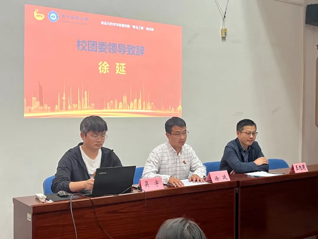 徐延老师代表学校团委对食药学院第四期“青马工程”培训班的召开表示热烈祝贺,并对学院团委“青马工程”开展以来取得的成绩表示肯定,徐老师结合“青马工程”开展的目标,对全体学员学习提出了要求,勉励学员们在学习实践中得到升华。