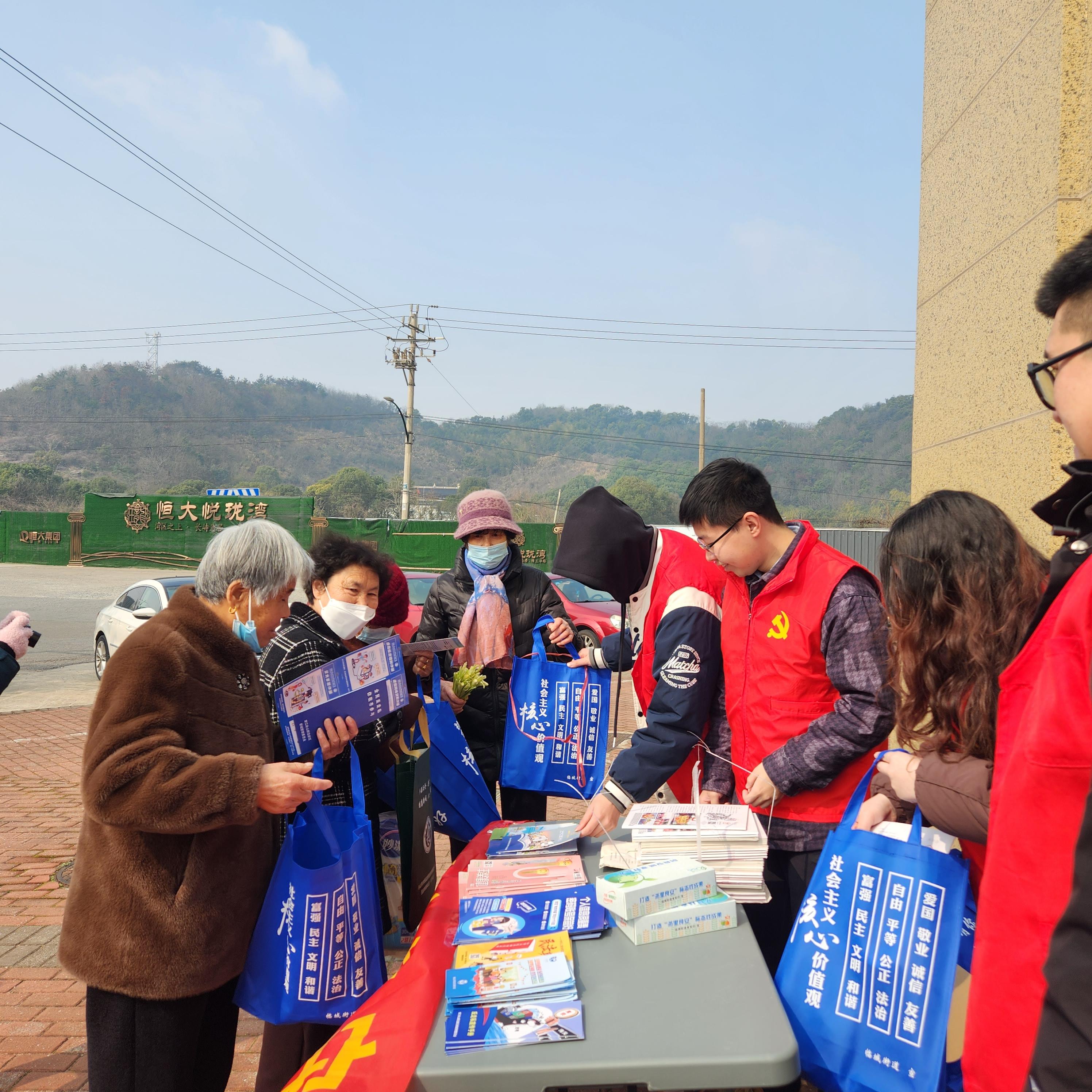 活动开始,志愿者们发放《中华人民共和国妇女权益保障法》、《中华人民共和国未成年人保护法》、《妇女权益保障法》、《反家庭暴力法》等宣传手册、司法救助政策等宣传资料200余份。从保障妇女的人身和人格权益、反诈骗、财产保障权益等几个方面出发,结合广大妇女群众的实际生活工作开展妇女维权方面的法律法规宣讲;对于年长的妇女朋友们展开讲解宣传的具体内容,活动现场吸引了许多居民朋友的到来。同时,志愿者们在现场也赠送《“典”亮生活·伴民同行——民法典学习宣传手册》的大礼包。