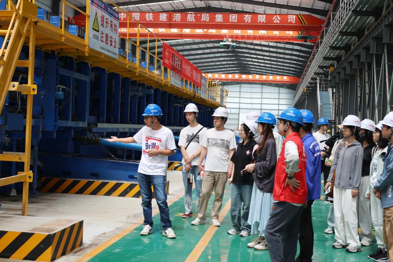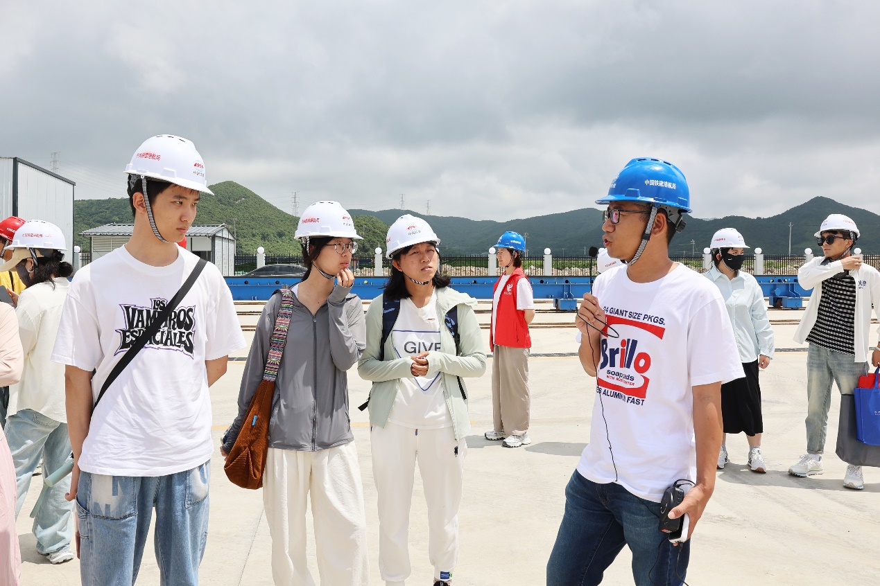 在中国铁建港航局集团有限公司,两院师生们观摩了六横大桥二期工程项目积峙桥施工现场、钢筋场、智慧梁场和项目驻地。师生们了解到,六横大桥二期工程是浙江省高质量发展建设共同富裕示范区的重大标志性工程,也是交通强省、海洋强省建设的重大标志性工程,更是加快甬舟一体化发展的标志性工程。大桥建成后,将有效拓展六横发展空间,对舟山的经济发展也将起到巨大的推动作用。