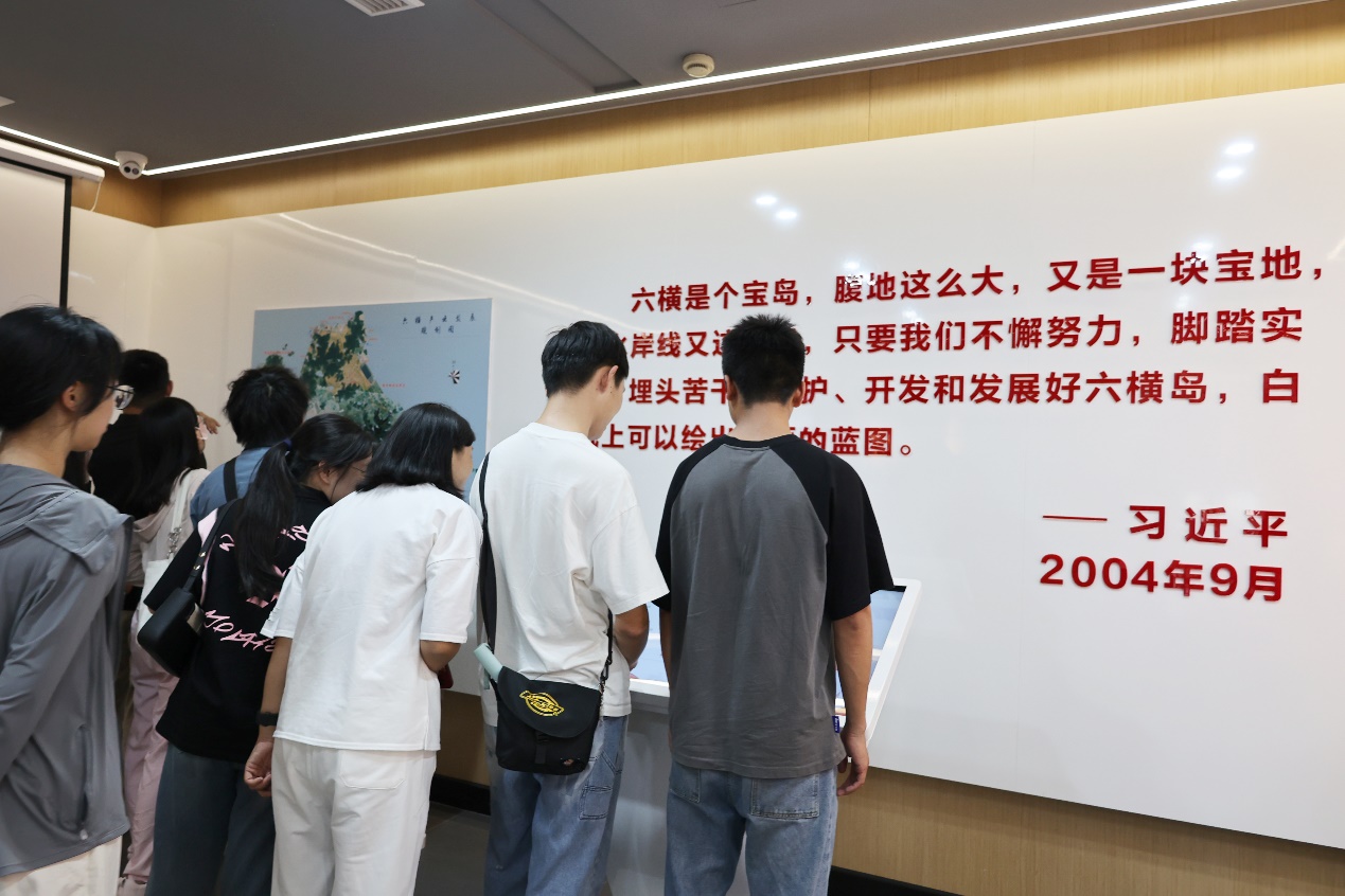 在龙芯湾党群服务中心、龙芯湾民生议事堂,两院师生们认真学习了当地“三大”服务体系、“五种”社会治理方式等优秀经验做法,深入了解了民生议事堂“立足六横特色、聚焦民生主题”的生动探索,深刻领会了习近平总书记“保护、开发和发展好六横岛,白纸上可以绘出美丽的蓝图”的重要指示,对六横岛“全岛联动、三域一体、区域共建”的总体思路和大党建理念有了进一步的认识。
