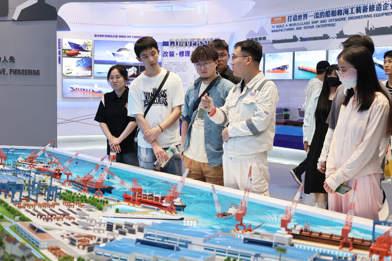 在舟山中远海运重工有限公司,两院师生们参观和学习了企业的海岛家文化、党工团“党建领航、融合发展”的经验做法以及公司在安全生产、绿色环保、科技创新、数字智能等领域取得的成绩,这也让师生们感受到舟山中远海运重工有限公司借力国家“一带一路”倡议和海洋强国战略,发扬“四特”传统,建设世界一流的船舶和海工装备造修企业的决心与勇气。