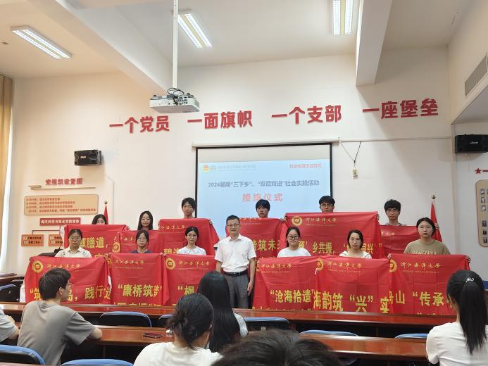 会上,王旭明老师为各实践团队代表授旗,并从自身社会实践经历出发,为各团队在开展实践提出建议。他强调,各团队在实践中要高度重视安全问题,平安开展社会实践;在开展活动前要组织规划,保证实践开展顺畅;注重团队合作,做好各类素材积累,深化实践成果。