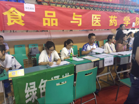 2017年9月14日、15日,食品与医药学院迎来了2017级新生入学报到,为确保家庭经济困难新生顺利入学,根据国家和省厅文件精神,我院在新生报到处专设“绿色通道”点,并派专人负责此项工作。